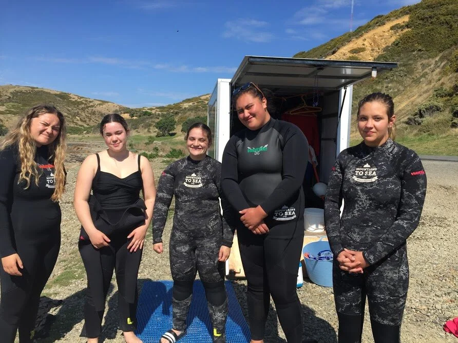 The Papa Taiao Wānanga group starting their year with a snorkel in Porirua Harbour with Mountains to Sea Wellington.